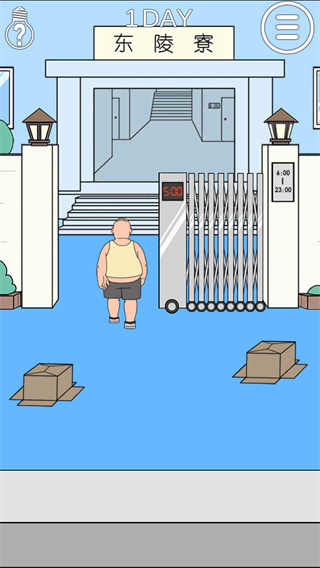 玩家需要在不惊动到宿管的情况下帮助小胖进入宿舍,可以是翻窗或者爬楼梯进去或者是绕后门进。通过观察然后寻找各种道具来解开谜题并找到宿管的钥匙。不同的关卡都有不同的谜题可以挑战,当然最终的目标还是进入宿舍。