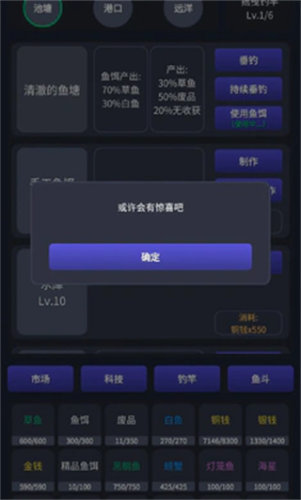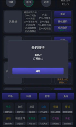 玩家可在村口水塘开始学习基础钓法并通过完成任务获得金币和经验,用于购买鱼饵、鱼竿和船只逐步解锁科技后可以前往港口和海岛探索新的海域。每片海域拥有不同的鱼种和宝藏也可能遭遇突发事件,而点击“垂钓”即可进行操作但需根据提示调整抛竿力度和收线节奏,掌握合适的时机即可成功钓起猎物。随着旅程深入玩家能挑战传说级海怪或发现隐藏在海底的遗迹,航行中可管理燃料和补给也能和其他渔夫进行交易或交流。