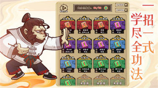 1、秘籍修炼:64本武学绝学任意搭配,14大门派、10大职业随意组合打造属于自己的独门心法;