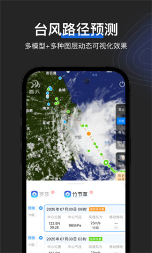 有雨时看分钟级公里级降雨预报,全新雷达配色。无雨时以上帝视角看云图,全国天气一目了然。