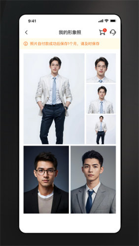 2、拍摄各种形象照,提供了各类不同的服饰和发型,还快速同步生成照片;