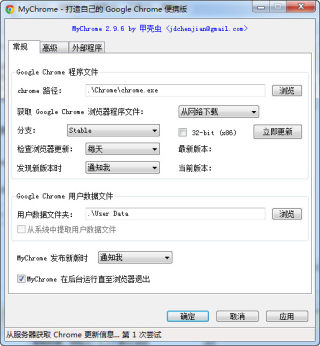 MyChrome是一款谷歌浏览器便携版制作工具,无需安装,可在任何位置运行。除了制作chrome便携版,还可以自动更新谷歌浏览器。