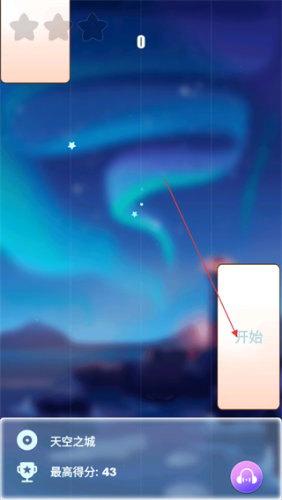 1、首先在歌曲列表中选择《天空之城》,然后点击【开始】进入游戏。