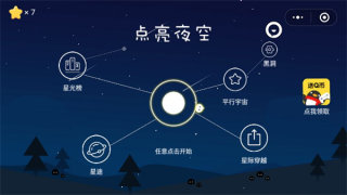 《点亮夜空小程序》是一款休闲益智类型游戏,完成一个个关卡,考验脑力的挑战,操作方式简单,只需要点击屏幕的方式就能完成有趣的挑战内容,通过微信还能查看好友的通关记录,与他们相互争夺比拼,收集更多的小星星。