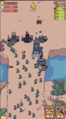 3、结合了白天建设村庄和夜晚的塔防战斗,白天时需要进行收集资源,规划土地,建造避难所和生产设施。