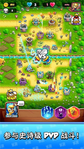 1、快节奏的PVP对局,需要在非常快的时间内做出对的决策,投放士兵和英雄技能来攻打敌人的弱点;