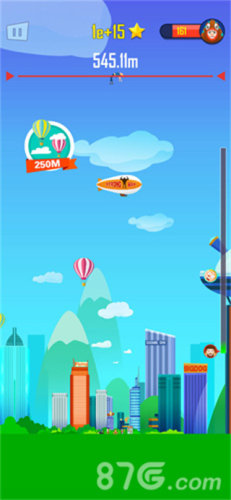 1、点击开始游戏,玩法非常得简单只需要点击屏幕就会把人物扔出去,在人物即将要落地面的时候再次点击抛起就可以了;