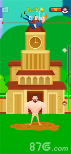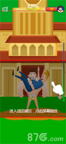 3、如果觉得力气不够扔到不高能够换一个更加有力强壮得力士,这样就能够把人物扔得更高更远。