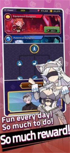 十分有趣的游戏玩法,玩家将需要组合属于自己的战队,将各种不同属性和技能的猫娘进行搭配,将其发挥最大的效果,同时还得在丰富的场景里进行探索和完成任务,完成任务后就可解锁更强大的装备和获得丰厚奖励。
