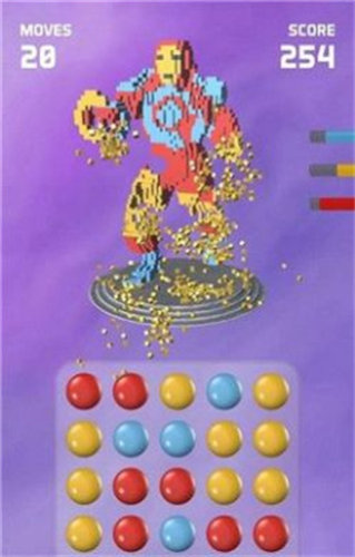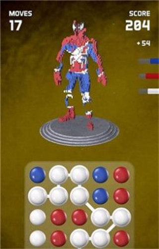 游戏的玩法虽然简单,但非常考验思维能力,需要将角落,边上和中间的小球进行消除,并且一样颜色的小球进行链接后就可达到爆炸消除的效果和获得分数,合理地使用道具系统可以帮助玩家更轻松和顺利地通关。
