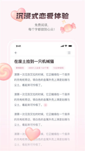 APP主打“碎片时间磕糖”,无需付费,随时随地打开就能进入梦幻剧情。每日更新令人上头的短故事,让你快速获得情感满足,电量一秒回满!