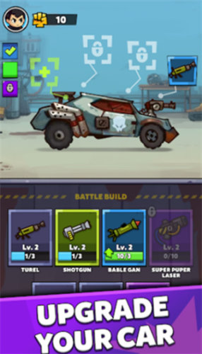 2、点击两个按键就能升级战车了,左侧是提高伤害,右侧是速度提升。