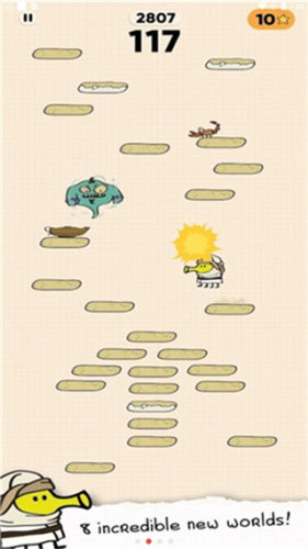 《涂鸦跳跃2》是一款非常经典的休闲跳跃类型游戏,以可爱的卡通风格还有各种不同的地图,只需要通关倾斜屏幕来控制角色左右移动,触碰到台阶上就会自动向上跳跃。