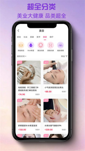 1、品类齐全的美业服务,各种品类的美业服务都可以轻松地预约,快速在线查找所需的服务;