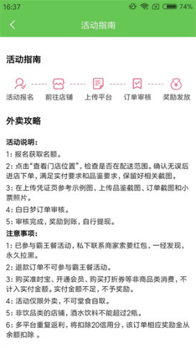 2、时刻举办多种优惠活动,让用户可以在不花费一分钱的情况下,享受到各大店铺的美食;