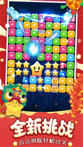 《消灭星星》是一款超人气的休闲消除小游戏哦,玩家只需要点击两个及以上颜色相同的星星就能消除,消得越多分数越高每一关都有不同的目标分数,看似轻松但要想拿高分可不容易呢游戏画面萌萌哒,配色明亮治愈伴随着清脆的音效,玩几局就能让人心情变好同时还有各种神奇道具助你一臂之力,巧妙使用还能打出爆炸连击效果,轻松突破高分记录别看上手容易,想要成为高手可得多动脑筋既解压又有成就感,真的是老少皆宜的一款经典游戏。