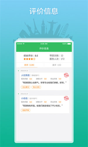 全国导游之家服务于导游,方便导游随时查看和编辑带团行程,展示电子导游证,管理自己的工作日历等等。行程改变提前通知游客,群发消息随时联系游客,实时接收新闻公告。在全国导游之家,让旅游更舒心!