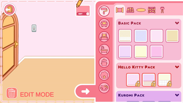 《凯蒂猫生活世界》是一款以三丽鸥角色为主题的休闲模拟游戏,在这里玩家可以和凯蒂猫、库洛米以及其他经典角色一起生活和互动,可以进入不同的房间,与角色们互动,改变它们的表情,玩出属于玩家自己的小故事。