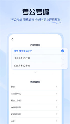 上岸熊 是一款面向广大考生的考试备考应用,特别为教资、教师资格证以及其他资格考试的考生量身定制。我们的目标是为你提供精准、实用的学习资源,助力你在考试中轻松“上岸”!