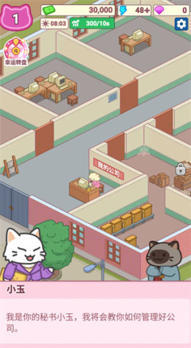 1、进入游戏后,你将开始管理自己的公司,秘书小玉会帮你熟悉初步的操作,带你一步步走上老板之路。