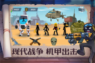 《火柴人奇袭》是一款充满趣味性和非常好玩的策略动作类游戏,采用了经典的火柴人为核心题材,许多玩家都对游戏爱不释手。游戏的玩法十分丰富,综合了卡牌,经典玩法和抢战的元素,为玩家提供独特的游戏体验,简单的玩法和操作,玩家将会扮演成指挥官的角色,并且需要在两种不同时代的战场上指挥火柴人士兵进行战斗或是操控炫酷机甲与敌军展开激烈的战斗,尽情地展示自身的战斗实力,将敌军击败后就可完成任务。