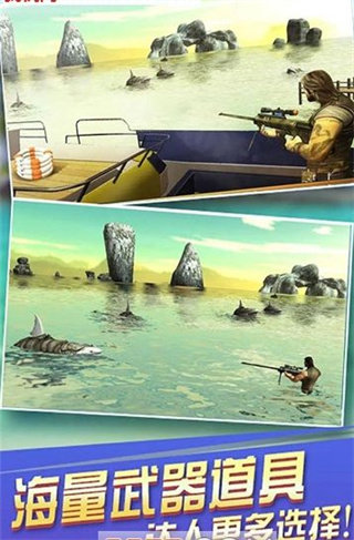 游戏的玩法充满刺激感,在丰富的关卡里,玩家将会与各种凶猛的鲨鱼进行搏斗,通过纵深的射击实力和技巧,精准地掌握角度和瞄向目标进行发射,成功将关卡地目标全数击败就可完成任务,顺利进入下一个关卡。