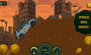 5、控制车辆不断前进直到油量耗尽,油量见底后就表示游戏结束并且会根据玩家行驶距离发放金币奖励。