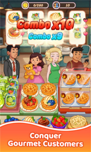 从经营最初的小摊并通过接单、制作和交付来获取金币,根据顾客的食材需求玩家只需点击即可切菜、煎烤或组合装盘。完成订单后可获得收益用于升级烹饪台、解锁新食材和新菜式以提高制作效率,且随着经营推进订单数量和复杂度将会增加,更需合理安排制作顺序避免超时。部分关卡会出现特殊条件,如限定时间和限定料理类型等增加挑战性。后期还可定制套餐以调整菜单来吸引不同喜好的顾客,如果参与烹饪挑战可通过连续通关获得稀有奖励。