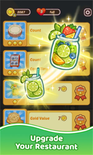 2、可扩建店铺规模,逐步解锁更多区域和菜系;
