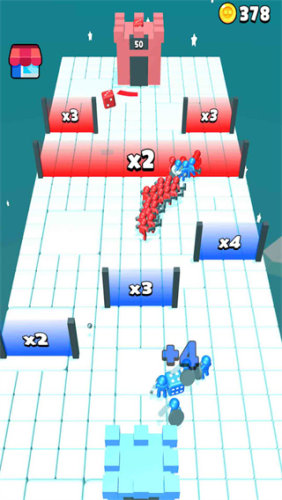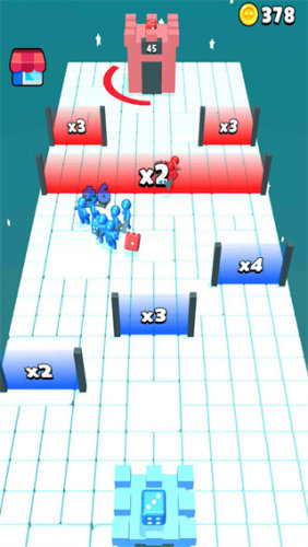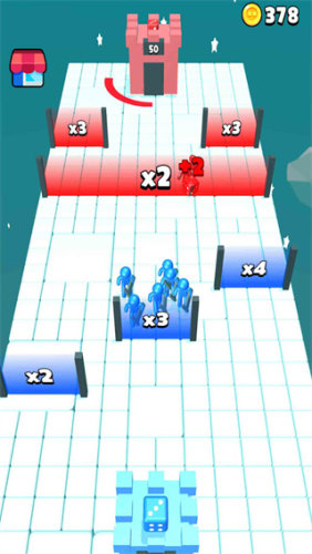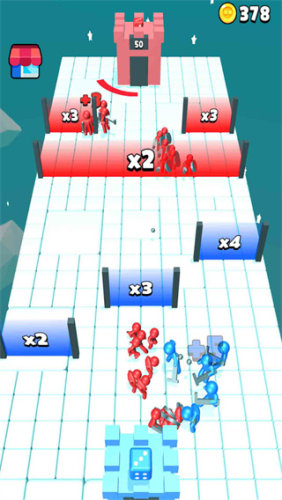 2、和敌方的士兵展开对抗,可以自由选择招募不同类型的兵种,通过进入强化门增加你的士兵数量。