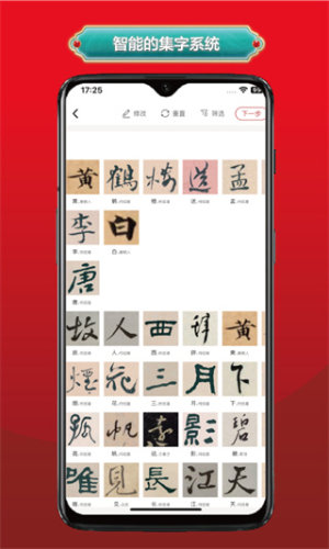 用户可以根据个人偏好选择不同字体风格进行创作,系统提供多种集字幅式选择,满足书法爱好者对字形结构和章法变化的需求。这种智能化的创作方式不仅方便用户临摹学习,还能激发创作灵感,带来全新的艺术实践体验。
