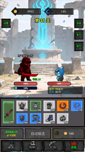 3、赚到的金币可以到商店内进行购买各式各样的资源来打造装备,从普通装备到传奇神装,品质越好的所需要的金币越多。