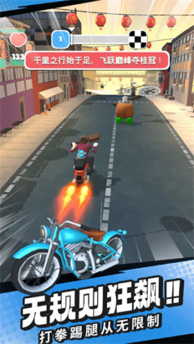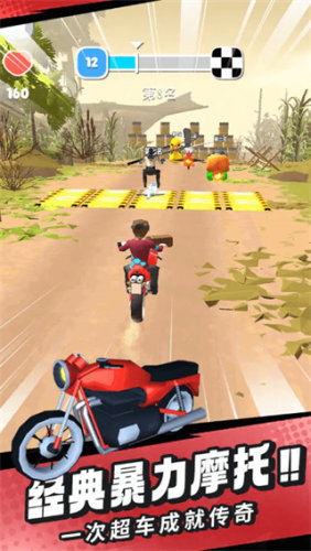 3、多种可以解锁的角色和摩托,每辆车的加速、操控和耐久都不一样,根据喜好选择最合适的搭配。