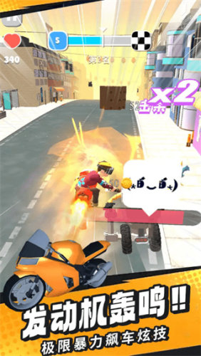 2、在屏幕上左右滑动就能控制方向,长按屏幕还能让摩托冲得更快。