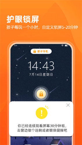 1、设置孩子使用手机的时间,如果超过时间了将会自动提醒;