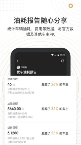 能耗报告随心分享:记录后自动生成报告,方便车主们多平台分享,与全国车友进行PK、互动;
