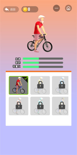 1、通过自定义改装的玩法让玩家可以选择自己心仪的自行车来改造以及升级;