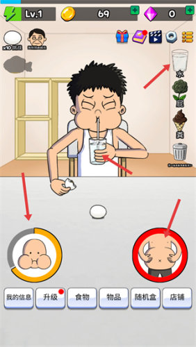4、当进食完后如果角色感到口渴可以点击右侧的水让他喝。