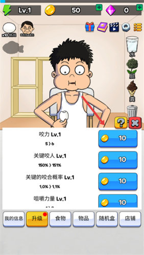 2、之后获得的金币可以用于提咬力、关键咬人、咬合概率和咀嚼力量;
