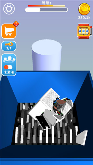 2、粉碎的东西越多,获得的金币就越多,用金币升级粉碎机,让它更高效;