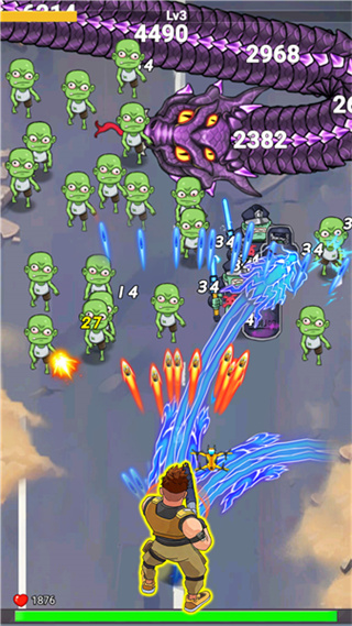 4、不断地升级自己的武器将大龙击败,成功击败场上所有的僵尸之后将会获得大量的金币以及丰富的奖励。