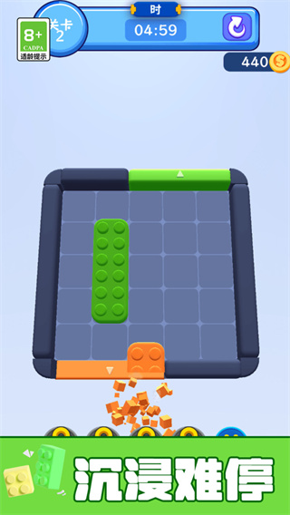1、消除方块时清脆的碰撞声、建筑物轰然倒塌的音效,还有伙伴加入时的提示声,让游戏更生动;