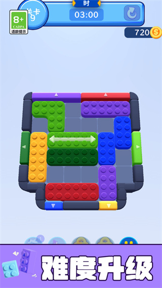 4、第三关已开启,难度有所增加,快来挑战自己,继续消除方块吧!