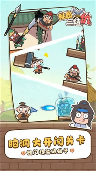 《桃园三结仇》是一款基于三国角色的搞笑冒险对战闯关手游,需要操作各种经典的三国角色,例如刘备,关羽,张飞三位角色以结合他们不同的技能和特性来进行闯关,拥有极具搞笑且和谐地卡通画风设计以便在闯关过程中会三兄弟会展现各种离谱且幽默地操作,同时还包含了多样化武器和精心设计地关卡,通过召集各种伙伴来共同进行战斗的同时还可以利用道具来帮助自己快速通关。