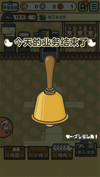 6、到了晚上则让小鸡、母鸡休息,这个时候就可以升级已有的设备机器等。