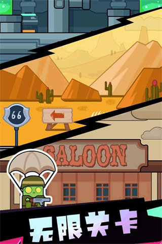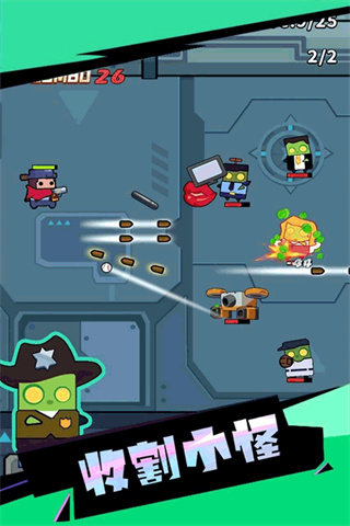 1、遇到丧尸时,点击屏幕角色就会跳起来,同时发射一颗子弹向前攻击。你的任务就是用子弹消灭敌人,击退全部敌人就算通关。