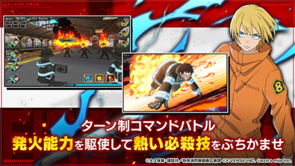 《炎炎消防队炎舞之章》是一款由知名动漫改编而成的一款角色扮演游戏,游戏还原了许多动漫的情节与各种经典场景,玩家须在游戏中召唤各种角色组成一支优秀的消防队并且踏上征服恶魔的奇幻旅程守护市民的安全,玩家可以培养各种角色并且强化队伍的实力。