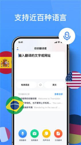 无论是商务会议、海外旅行,还是与国际友人畅聊,你好翻译言都能让你轻松应对多语言沟通场景,摆核心功能,畅享更智能翻译体验