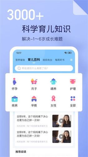 4、在辅食育儿界面提供了很多科学育儿、快乐孕期的生活知识让用户学习;