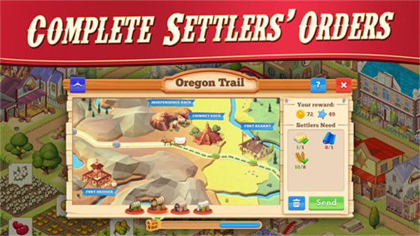 《俄勒冈之旅繁荣小镇》英文名字叫做Oregon Trail,是一款季节了冒险,经营和生存元素的游戏内容,在荒凉的场地中,扮演成为一名开拓者与管理者的身份,穿越回到西部时期,一步步地建立出属于自己理想中的繁荣小镇。